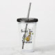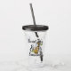 Ilustracion de té helado en un jarro de albañil con té salpicado y las palabras, "Té dulce y sol".