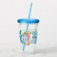 The big one birthday party gifts personalized surfing retro beach party acrylic tumblers. A big blue wave, palm tree and a surf board, lovely summer, beach birthday party theme.