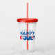 Este tumbler acrílico con su propia tapa y paja tiene una imagen de la feliz impresión del 4 de julio.