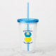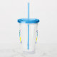 La bandera ucraniana es azul en la parte superior y amarilla en la parte inferior. Aquí tenemos un ángel vestido con la bandera azul y amarilla de Ucrania. Arriba, en letras azules se lee SLAVA UKRAINI. Debajo, en el mismo color están las palabras GLORIA A UCRANIA. Espectáculos aquí en la parte delantera y trasera de un vaso acrílico con paja.