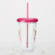 Tumbler acrílico para chicas de niño lindo, con un falso purpurina de oro unicornio con flores de acuarela, cinta rosa y el nombre del niño.