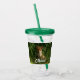 Un tumbler acrílico con una fotografía que muestra a un zorro pequeño lindo con piel roja y blanca. Rodeado de hojas y hierbas verdes.