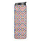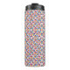 Vaso alto con un patrón geométrico vibrante de diamantes y triángulos multicolores. La tapa negra contrasta con el diseño animado e intrincado.