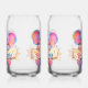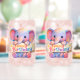 Make every birthday toast extra sweet with this adorable elephant frosted can glass set the design features a charming Rosie cheeked baby elephant with colourful pastel ears holding a festive happy birthday banner adorned with tiny stars. These trendy can shaped glasses are shown filled with a refreshing pink drink over crushed ice highlighting the soft whimsical art style. They are the perfect choice for children children's parties, baby showers or as a thoughtful gift