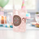 Esta mandala fue diseñada para el símbolo del zodiaco, Aries, que representa una piedra de jaspe roja en el centro rodeada de elementos que representan el signo, como el símbolo del signo, la constelación y el símbolo alquímico del Fuego, así como las viñas y tejas de filigree que la envuelven en una imagen sólida en tonos rojos, plateados y marrones. Esta cristalería también está disponible en copas de vino sin tallo y en estilos rocosos.