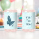 Una simple silueta azul de un cuervo vivo (Corvus corax) de estilo nórdico-celta, superpuesta a una imagen de fondo nevada. Personalizar añadiendo su propio texto en el reverso.