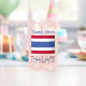 El cristal personalizado muestra la bandera tailandesa roja, blanca y azul con la palabra TAILANDIA abajo en los colores de la bandera. Hay un lugar para añadir un nombre para un toque personalizado o un regalo. Bonito regalo de bienvenida para un bar.