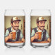 Este juego de cristal en forma de lata tiene dos hombres de estilo cómico diferentes que beben cerveza. Haría un gran regalo de cumpleaños para el bebedor de cerveza en tu vida