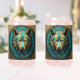 Vaso Con Forma De Lata Cabeza de lobo de oro y turquesa