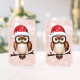 Ce design charmant présente une illustration détaillée d’une chouette brune et blanche perchée sur une branche. La chouette porte un bonnet de Noël rouge parsemé de flocons de neige blancs, ajoutant à l’esprit festif. Ses grands yeux captivants attirent l’attention, tandis qu’un petit cadeau rouge avec un ruban blanc repose subtilement à la base de la branche, suggérant la nature généreuse de la saison des fêtes. Ce design capture la chaleur et la joie de Noël à travers la représentation de cet oiseau emblématique de l’hiver dans un cadre cosy et célébratoire.