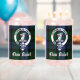 El set de moda can glass presenta la insignia de escudo del Clan Baird escocés y texto sobre fondo tartán