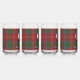 El trendy can glass presenta la insignia de escudo del Clan Escocés Chisholm y texto de personalizable sobre fondo tartán