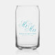 Classy Mr and Mrs wedding personalized azure blue can glass. Custom glasses for alcoholic drinks, juices, smoothies, compote and more. Luxury drinking glass personalized with names of bride and groom. Unique drinking glasses for fancy wedding party in summer and other times of the year. Change the quantity to get the cheap bulk discount price. Stylish script typography template. Part of matching design theme. Blue or custom color.