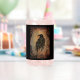 Raven sobre el fondo de las baldosas de piedra. Los engranajes de reloj alrededor del borde.