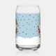 Cute Santa Snowflakes Kids Name Can Glass. A cozy, Boho-inspired Christmas can glass featuring a cute Santa Claus, with soft earthy tones such as terracotta, cream, and green. Delicate snowflakes are scattered across the glass, adding a touch of winter magic. The overall aesthetic exudes a warm, rustic, and modern Bohemian feel, perfect for a stylish yet festive holiday look.