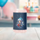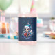 Un elfo alegre que brilla con su largo y florido cabello azul. Su cabello parece brillar en la luz suave, dándole un brillo mágico. En su cabeza usa un lindo gorra de Navidades azules adornado con una pompa blanca que concuerda perfectamente con su atuendo. Su cálida sonrisa irradia alegría y calidez, dando a los espectadores un sentido de anticipación festiva. El fondo del diseño está formado por elegantes árboles blancos de Navidad y el cielo está salpicado de brillantes estrellas blancas que brillan como pequeños diamantes, creando una atmósfera mágica.