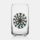 La imagen muestra un patrón circular con formas abstractas que se parecen a figuras fantasmas en blanco con acentos negros y marrones, creando un efecto caleidoscópico.
