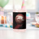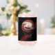 Un objeto esférico -que parece casi un planeta o un orbo energético- se sitúa sobre un fondo oscuro y cósmico. La esfera es predominantemente de color rojo intenso, con movimientos dinámicos de luz blanca y dorada pálida que rodean su superficie con motivos complejos y caóticos. Estos rastros de luz dan la ilusión de movimiento, como si la energía fluyera y girara constantemente dentro y alrededor de la esfera. Detrás de la esfera, bandas diagonales de luz roja recortan la oscuridad, agregando profundidad y drama. Alrededor de la esfera hay tendriles de luz tenues y espeluznantes —casi como la electricidad o los filamentos cósmicos— flotando libremente, lo que sugiere que la órbita está irradiando energía o suspendida en un vacío surrealista de tipo espacial.