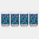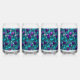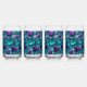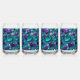 En forma de lata: El cristal parece una lata clásica de bebidas, con forma cilíndrica y mango tipo tabulación. Beber: Esto sugiere que está diseñado para beber varias bebidas, como agua, jugo o refresco. La imagen presenta un patrón vibrante y caprichoso de corazones y flores en un fondo verde azulado. Los corazones son predominantemente morados y verde azulados, con una apariencia brillante, casi 3D. Se organizan en diferentes tamaños y orientaciones, superpuestas y entrelazadas. Estrellas blancas más pequeñas y flores blancas delicadas se reparten por todo el diseño, lo que aumenta el sentimiento de alegría y alegría. El patrón se repite para crear un fondo transparente.