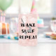 Esta taza presenta un diseño gráfico dinámico de una persona que navega por el despertador, con una onda estilizada abajo y un pájaro volando sobre el cielo. Las palabras "WAKE SURF REPEAT" se muestran de forma destacada por encima y por debajo del surfista en negrita y mayúsculas. Este diseño cautiva la emoción del waksurf, lo que lo convierte en una elección perfecta para los amantes de los deportes acuáticos.