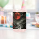 La luna de sangre iluminó el camino sobre el bosque oscuro en la noche.