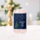 Beautiful blue night scene with stars and green tree accompany the script text "Comfort and Joy" - set on blue/silver sparkling background. Lovely Personalize the text if you wish.