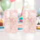 Soft pink and green baby shower soda glass with bunnies and wreath. Keepsake personalized glass.