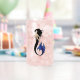 Una sirena de tinta tribal con azul en la cola puesta en un fondo de azul claro