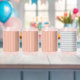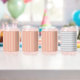 Vaso Con Forma De Lata un fondo blanco con un patrón de círculos