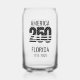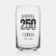 Claim your spot on the sand or by the pool with this patriotic Can Glass, celebrating America's historic 250th anniversary in 2026 and showcasing your love for the state of Florida. The design features a bold "250" with American flag stars and stripes, along with the text "AMERICA" and "FLORIDA".
