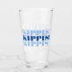 Vaso de cerveza temático azul y blanco Kippis (¡salud!).