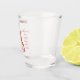 1,5 onzas. vaso de medida con una imagen de los elementos decorativos del rojo que remolinan y del oro y de los corazones rojos, rosados y del oro en un medio rojo y oro y un fondo medio blanco. El texto opcional lee, "todo lo que usted necesita ahora es amor, pero un pequeño tiro y después no daña." Vea la colección entera del vaso de medida del el día de San Valentín en la sección de los platos de FOOD/BEV el |.