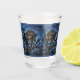 Este dibujo gráfico digitalizado representa un árbol fantasmagórico, de aspecto angosto, con forma de garra, miembros, estirados hacia un cielo azul, oscuro, de color bronce, lunar con aves del Raven, encaramado, entre las ramas, mostrado con gótico, saludo, contra un cielo azul y azul de medianoche.