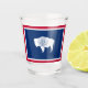 Este diseño presenta la bandera estatal de Wyoming, que es un estado doblemente mediterráneo en el oeste de Estados Unidos. Es el segundo estado más escasamente poblado del país. Wyoming está rodeada al norte por Montana, al este por Dakota del Sur y Nebraska, al sur por Colorado, al suroeste por Utah y al oeste por Idaho y Montana. El apodo oficial de Wyoming es "Estado de Igualdad", pero a veces también se le conoce como "Estado Cowboy" o "Gran Wyoming". La mitad occidental de Wyoming está cubierta en su mayor parte por los rangos de las Montañas Rocosas, mientras que la mitad oriental del estado es la pradera de alta elevación llamada las Llanuras Altas. El parque nacional Yellowstone se encuentra parcialmente en Wyoming y el parque nacional Grand Teton está completamente dentro del estado. Cheyenne es la capital del estado y la ciudad más poblada de Wyoming. La bandera del estado de Wyoming incluye una silueta de un bisonte americano. El rojo simboliza a los nativos estadounidenses y la sangre de los pioneros que dieron sus vidas. El blanco es un símbolo de pureza y rectitud. El azul es el color de los cielos y las montañas lejanas.