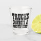 Vidrio corto con divertido texto de cita "con TRUCKS COWBOYS & COUNTRY MUSIC".