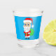 Santa con un largo abrigo con su bolsa de juguetes y golosinas.