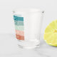Chicas personalizados de moda de Stripe Vip Bachelorette Party Personalizado Shot Glass con texto editable y la redacción con tu destino o ubicación, el nombre de la novia y citas divertidas como "besties, brotes y bebidas" es un recuerdo creativo y útil para tu equipo de viajes o damas de honor. Mostrado en azul verde azulado, verde menta, rosa coral y terracota con colores de rayas completamente editables que se corresponden con el tema fiesta.