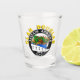 Un vaso de vidrio de Clan Douglas con el escudo Salamander in Flames.