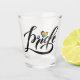 Esta obra de arte presenta texto con un colorido corazón arco iris.