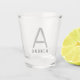 El vidrio de disparo personalizado con un nombre masculino en monograma moderno y subestimado, sutil y profesional, y el original tiene un clásico tipo de letra sans serif minimalista para un simple y sofisticado look atemporal, perfecto para un regalo de los padrinos, una fiesta de soltero y una fiesta de novias o un regalo de honor para la celebración de cumpleaños.
