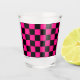 Cuadrados de cuadros de color rosa caliente patrón retro geométrico negro barware Shot Glasses regalo para ella. Patrón cuadrado geométrico retro de Guay. Baldosa de época negra y damero moderno rosado caliente.