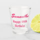Celebra tu cumpleaños número 40 con amigos con este hermoso vaso de chupito. Tu nombre aparece en un texto rosa impresionante con "Cumpleaños feliz 40" escrito debajo. ¡Personaliza tu vaso de chupito hoy mismo!
