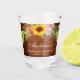 Vaso de Chupito de Despedida de Soltera con Girasoles Acuarela y Rosas, Peonías y Verdor en Madera Rústica