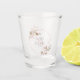 Delicados arreglos folclóricos con pequeños acentos florales en tonos suaves y oníricos de crema, taupe y oro rosa con salpicaduras de purpurina, y diseños únicos hacen de esta colección una interesante colección, especialmente para bodas de primavera. El vidrio de disparo del boda que se muestra aquí presenta un marco circular de efecto Relieve metalizado bordeado por follaje junto con sus nombres y fecha boda. Vea el vínculo de colección en esta página para ver todos los elementos coincidentes de este hermoso diseño o busque ID817 para ver otras piezas y opciones de color para este conjunto.