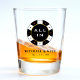 Fresco, negro, blanco, rojo y dorado todo en vaso shot de favor de boda de ficha de póquer de casino. Personalízalo con los detalles de tu evento.