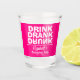 Drink Drank y la palabra Drunk al revés, estas copas de chupito personalizadas para despedida de soltera son divertidas de usar durante la celebración y para que los invitados se las lleven a casa como recuerdo. Mostramos un fondo rosa intenso, pero puedes cambiarlo a cualquier color.