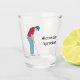 Divertido Golfer vistiendo una camisa roja y pantalones azules con una gorra en la cabeza, poniendo un vidrio de disparo en el diseño de una pelota de golf. Personalizar el texto con tu nombre.