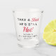Graciosa fiesta de cumpleaños número 50 a favor de un vaso. Personaliza como "Toma un disparo que aún está caliente" o "Toma un disparo que aún está caliente" y su nombre y fecha de fiesta.