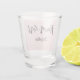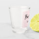 Vaso de chupito de Jardinera en rosa con un moderno guion de caligrafía en negro sobre un simple fondo rosa pastel. Más productos con este diseño están en la colección de abajo.