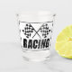 Este cristal de disparo se muestra con un diseño impreso de banderas de carreras. Personalizar este artículo o compra tal cual. Imagen de stock